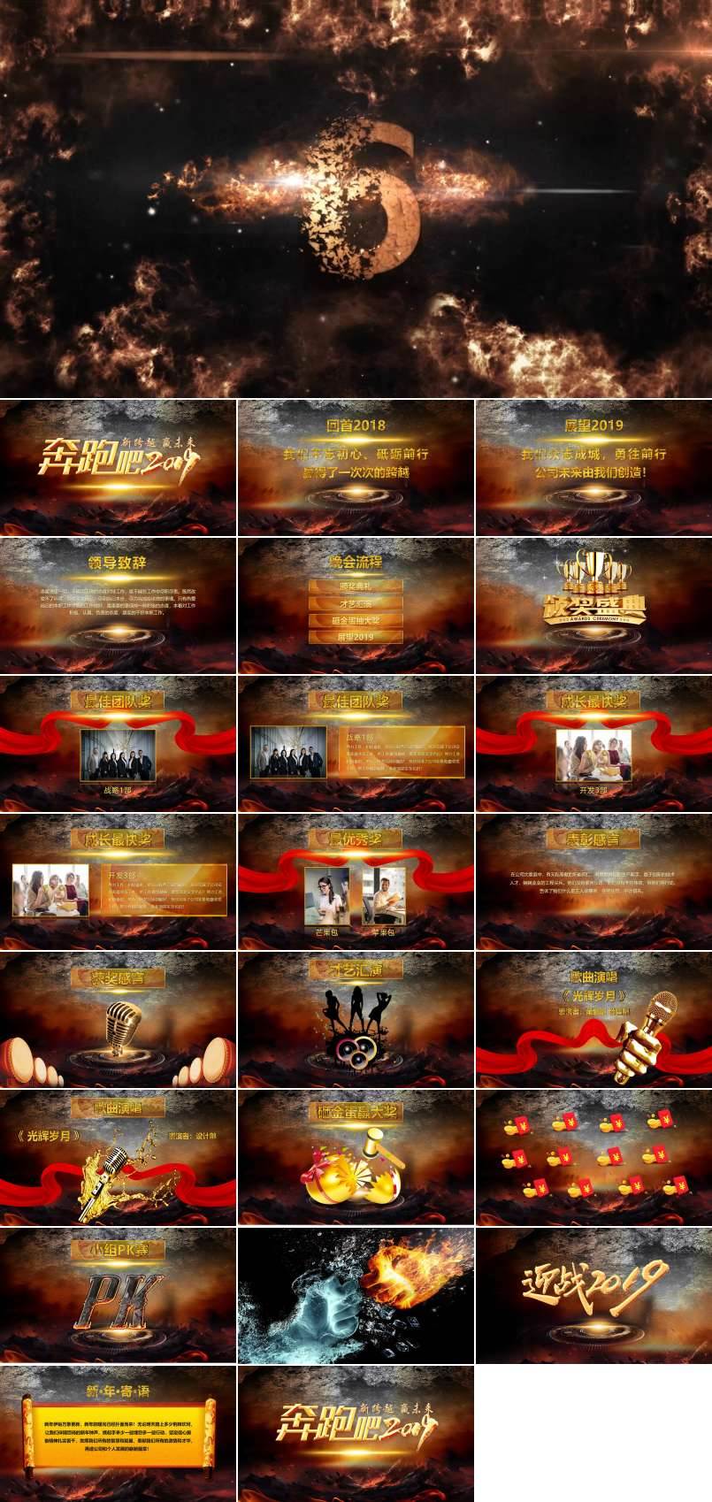 • 奔跑吧2019企業(yè)特效動(dòng)畫年會(huì)PPT模板采用高端大氣的倒計(jì)時(shí)特效動(dòng)畫開場,PPT一共24頁,可用于2019企業(yè)年會(huì)晚會(huì)或頒獎(jiǎng)典禮。