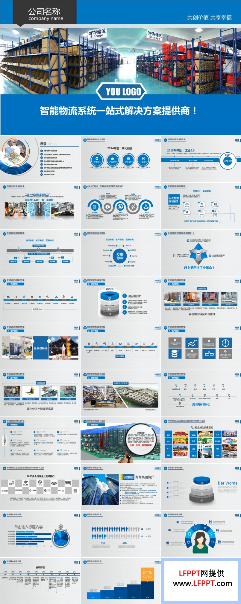 • 這是一套立體風(fēng)格的PPT模板素材,共34頁(yè)。PPT封面以龐大系統(tǒng)的貨物儲(chǔ)存區(qū)為背景圖,白色正體字突出主題:智能物流系統(tǒng)一站式解決方案提供商。PPT正文分為九個(gè)方面介紹智能物流的相關(guān)內(nèi)容,重點(diǎn)介紹了幫幫智能物流企業(yè)的相關(guān)企業(yè)文化、基本情況,市場(chǎng)運(yùn)營(yíng)及品牌運(yùn)營(yíng)情況等內(nèi)容,讓您感受智能時(shí)代共創(chuàng)價(jià)值,共享幸福的智能生活。