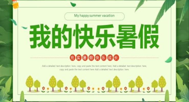 這是一套適用于針對2022年暑期過后秋季開學主題為“我的快樂暑假”的主題班會PPT模板,主要內(nèi)容包括假期內(nèi)的活動、從活動中獲得的收獲和啟發(fā)等,共計23頁;本套PPT在表達形式上采用熱氣球、樹林、樹葉等極富童趣的動漫作為點綴,緊扣PPT的主旨內(nèi)容,以淡綠色和草叢綠作為主背景色,PPT頁面內(nèi)容附有許多暑假期間的照片,能夠吸引學生的興趣;