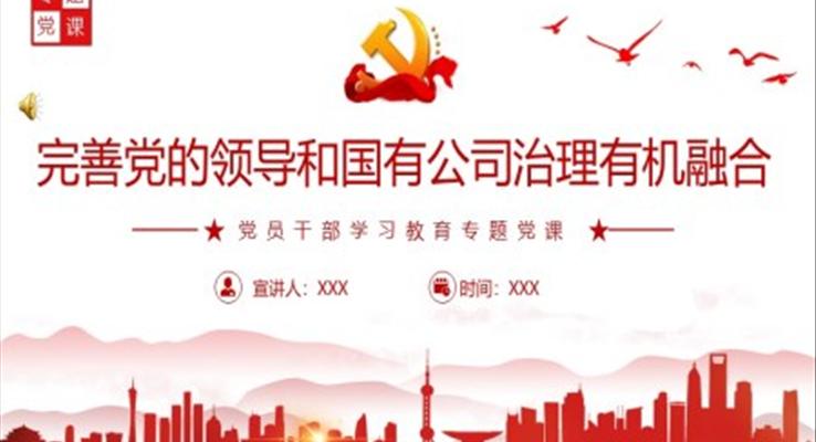 這是一個(gè)關(guān)于《完善黨的領(lǐng)導(dǎo)和國(guó)有公司治理有機(jī)融合》的PPT。國(guó)有企業(yè)是黨領(lǐng)導(dǎo)的國(guó)家治理體系當(dāng)中的重要組成部分,理所應(yīng)當(dāng)堅(jiān)持黨的領(lǐng)導(dǎo)。要進(jìn)一步明確國(guó)有企業(yè)黨委發(fā)揮領(lǐng)導(dǎo)作用的重點(diǎn),確保國(guó)有企業(yè)改革發(fā)展的正確方向,發(fā)展壯大國(guó)有經(jīng)濟(jì),鞏固公有制主體地位。完善黨管干部原則和市場(chǎng)化選人用人有機(jī)融合機(jī)制,讓優(yōu)秀人才出得來(lái)、用得活、留得住。通過(guò)這個(gè)ppt,我們將共同了解關(guān)于完善黨的領(lǐng)導(dǎo)和國(guó)有公司治理有機(jī)融合的相