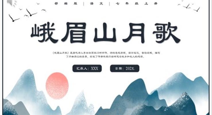 這是一個關(guān)于《部編版峨眉山月歌》的PPT。《峨眉山月歌》是唐代詩人李白的一幅作品,在文章當中描述了美麗的峨眉山,表達了作者當時遠離家鄉(xiāng)的思鄉(xiāng)情感。通過學習這篇文章能夠增加對古詩詞的了解,認識許多生詞、生字等等內(nèi)容,增加對中國傳統(tǒng)文化的了解和認同。通過這個ppt,我們將共同了解關(guān)于部編版峨眉山月歌的相關(guān)內(nèi)容。搜索復制
