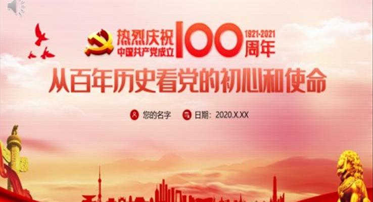 這是一套以從百年歷史看黨的初心和使命為主題的PPT模板,共計30頁。PPT主頁以中國城市標(biāo)志性建筑為背景,裝飾以中國特色獅子石像、北京天安門、人民大會堂內(nèi)景照片等,獨具中國特色的政治色彩。PPT內(nèi)容指出共產(chǎn)黨成立的初心和使命就是為中國人民謀幸福,為中華民族謀復(fù)興。主要介紹了中國共產(chǎn)黨成立的主要思想指標(biāo)是馬克思列寧主義思想,以及在中國共產(chǎn)黨的領(lǐng)導(dǎo)下成立了新中國,始終堅持中華人民共和國的一切權(quán)力屬于