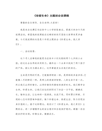 第三個環(huán)節(jié)--感受生命的脆弱主持人甲:人的生命是來之不易的,可是生命卻很脆弱。我國頻繁發(fā)生災難,在汶川地震、玉樹地震、云南地震,我們看見一幕幕的慘狀,悲慘的場景,一次又一次讓我們感受到生命的脆弱以及可貴??墒牵腥藚s漠視生命。 失落的花季(指名朗讀材料)(1)成都市一個13歲少年因與父母就學習問題發(fā)生爭執(zhí)縱身跳下了7樓,結束了生命。(2) 16歲學生陳某用親人給的壓歲錢長時間打電子游戲。當晚,在家人對其教育時,陳某進入家中衛(wèi)生間,久久不出。家人發(fā)現(xiàn)情況不妙,沖入衛(wèi)生間發(fā)現(xiàn)陳某已用兩條毛巾將自己吊死在水管上。(3)2002日,遵義市有5位小學生集體自殺,原因僅僅是,一人因“爸爸沒買生日禮物”,便認為“爸媽對我不好”,而到她家玩的四位小伙伴也由此聯(lián)想到自己受父母打罵的經歷,于是這 11-13 歲的小女孩,一致決定吃安眠藥一死了之,所幸被及時發(fā)現(xiàn)送到醫(yī)院獲救。