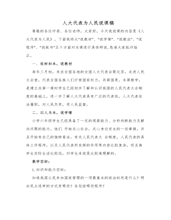 • 人教部編版道德與法制六年級上冊國家機(jī)構(gòu)有哪些說課稿